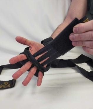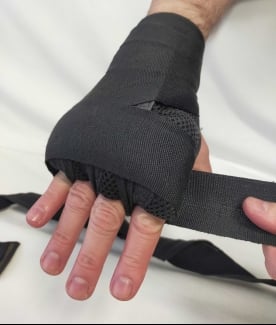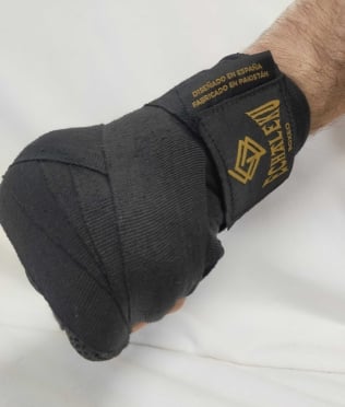 Diseño sin guante: Estas vendas no incluyen un guante incorporado; en su lugar, cuentan con un vendaje que se coloca entre los dedos, proporcionando una sujeción firme y permitiendo una mayor libertad de movimiento.